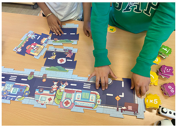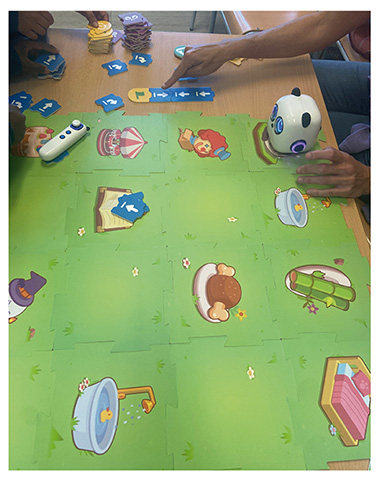 Para el desarrollo de esta práctica se utilizaron dos unidades de mTiny, un robot educativo ideal para iniciarse en la programación sin necesidad de usar pantallas. Este robot se programa a partir de unas tarjetas de programación que colocadas en línea permiten crear una secuencia y, al mismo tiempo, el robot actúa encima de unos mapas interactivos que multiplican aún más las oportunidades de aprendizaje gracias a esta herramienta digital.